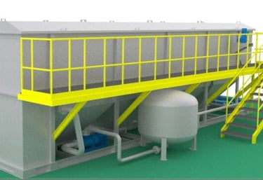 DAF is based on a physical / chemical process, where the injection of air into the water stream with chemical assistance causes the particles/flocs to float to the surface. This floating sludge layer is then automatically and continuously removed by a scraper mechanism. The DAF system will produce a treated effluent virtually free of TSS, FOG and remove a large portion of the BOD